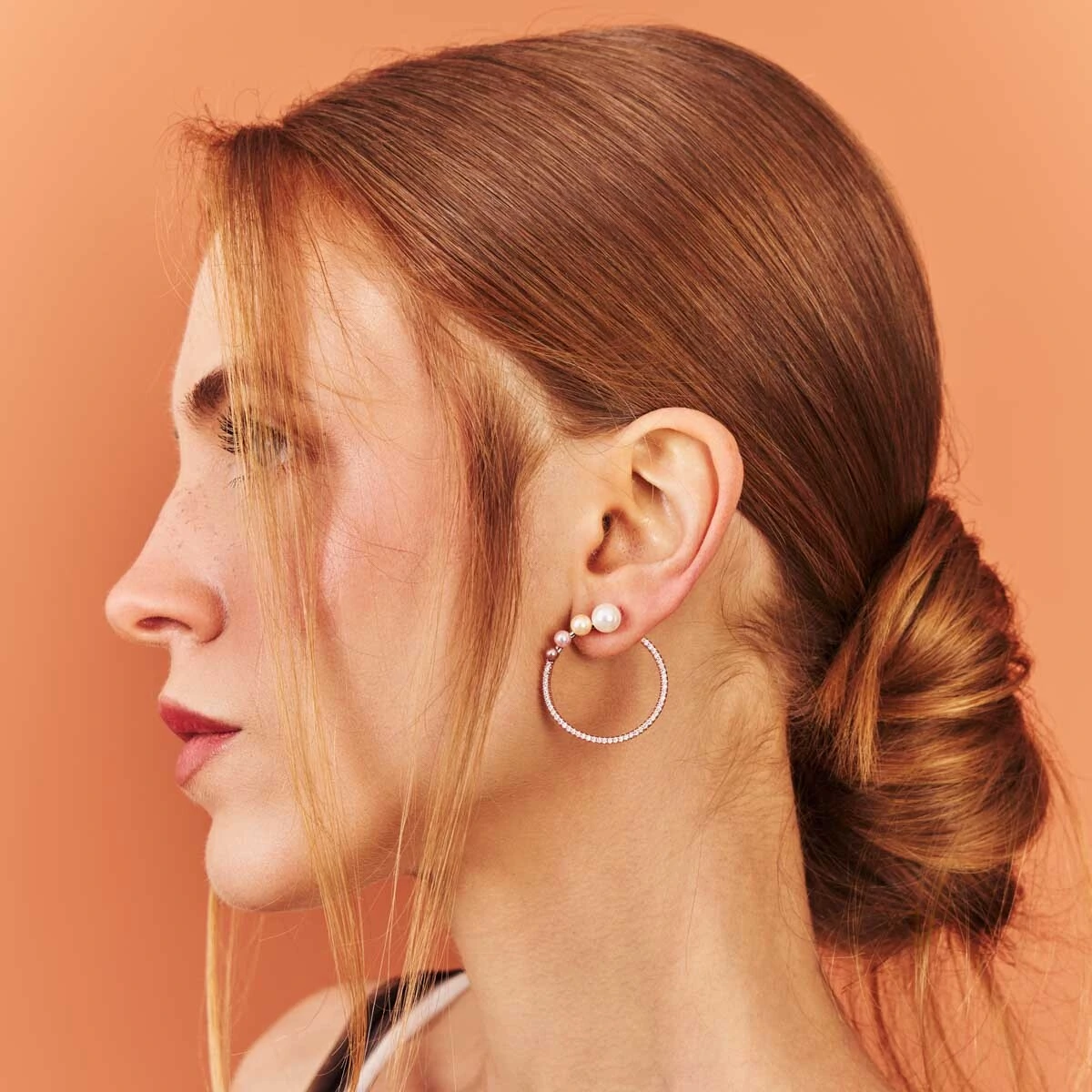 O Brinco Monaco com Pérolas, Zircônias e Banho de Ouro Rosê é uma joia que exala romantismo e refinamento. O brilho das pérolas unido ao Rosé e Design de Argola cria um equilíbrio perfeito entre clássica elegância e estilo contemporâneo.