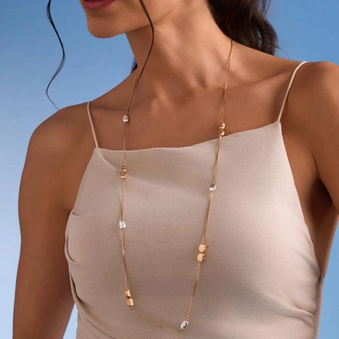 Combinando elegância e versatilidade, esse colar é perfeito para transformar produções do dia a dia em looks sofisticados e também para brilhar em ocasiões especiais. O mix de banhos proporciona não apenas beleza, mas também durabilidade e resistência.