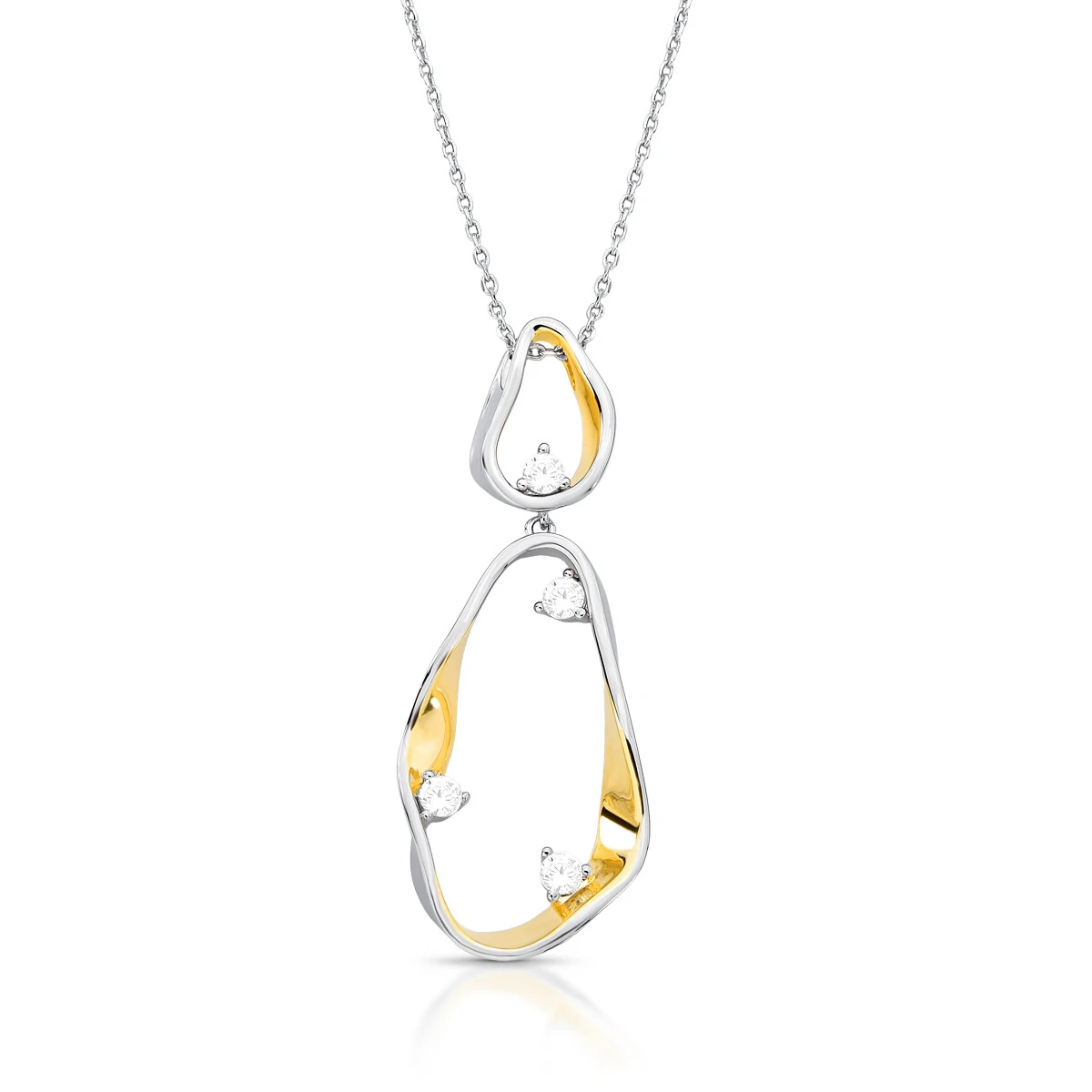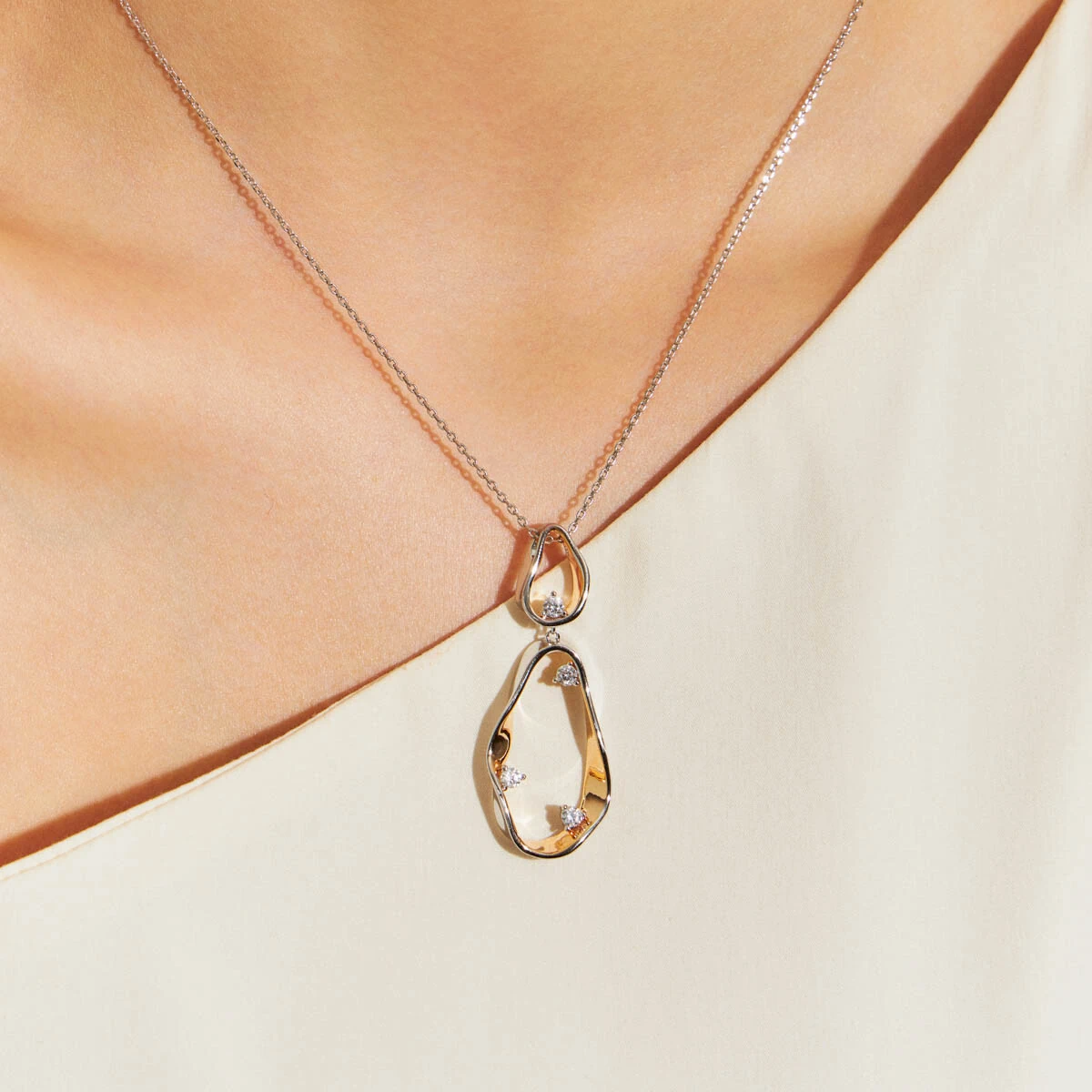A composição mistura o design escultural com o toque luminoso das zircônias, criando um efeito artístico e delicado que ilumina o colo. O mix de banhos traz profundidade ao visual, tornando o Badu uma peça que transforma até as produções mais simples.