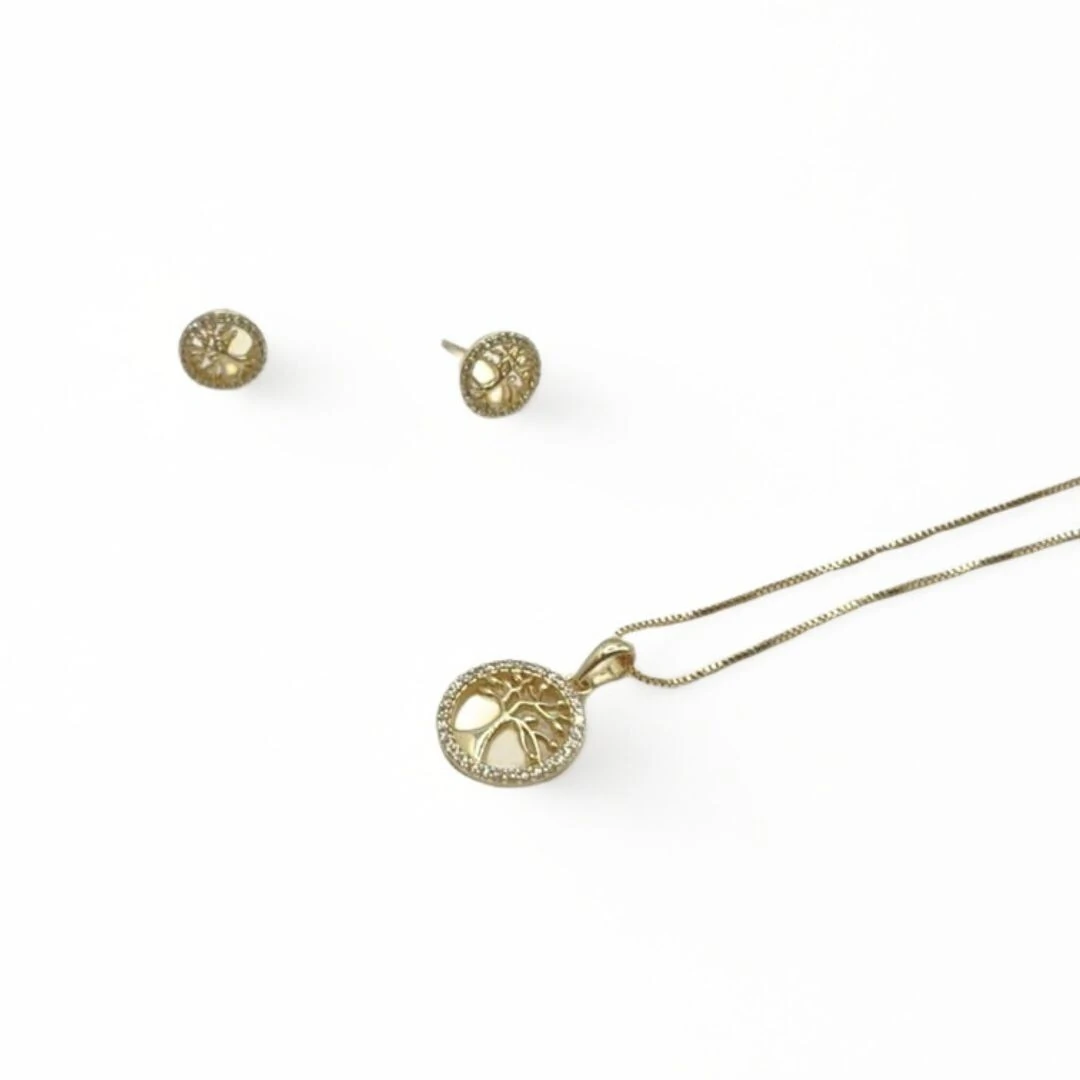 Conjunto Árvore da Vida com Banho de Ouro 18K e Zircônias cravejadas