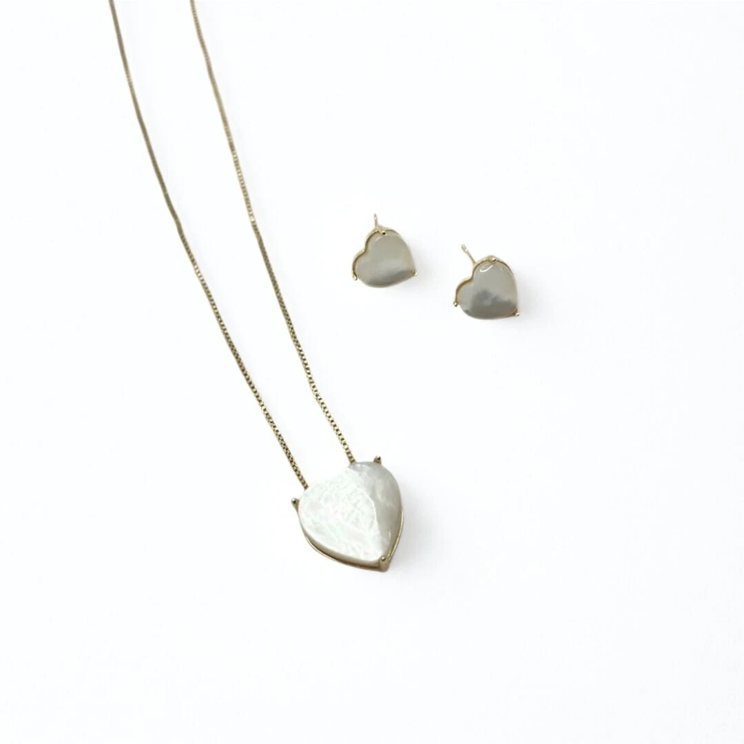 Conjunto Coração com Madrepérola e Banho de Ouro 18K