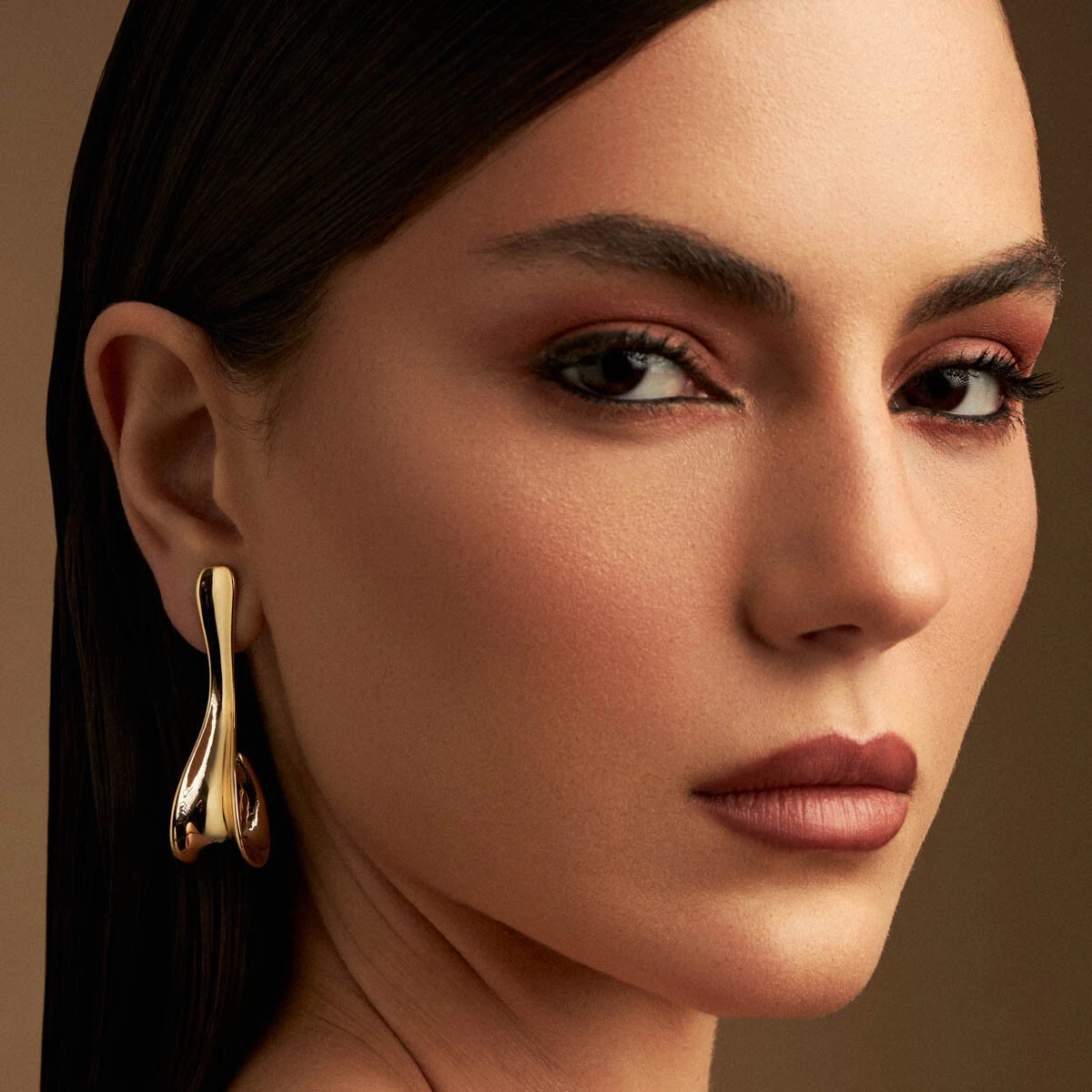 O Brinco Catembe é a tradução da sofisticação contemporânea em forma de joia. Seu design orgânico e escultural cria movimento, fluidez e impacto visual, valorizando o contorno do rosto com elegância absoluta. O acabamento polido em banho de ouro 18K garante brilho intenso e uma estética moderna, perfeita para mulheres que gostam de peças autorais e cheias de personalidade.