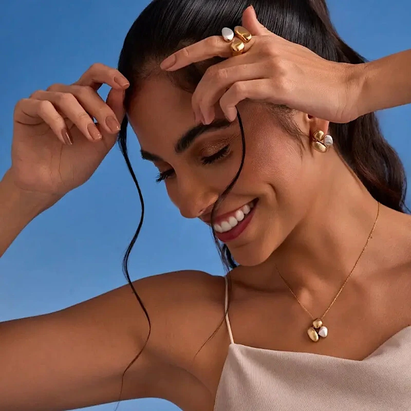- Mix de banhos (ouro, ródio e rosé) para harmonizar com outras joias e criar composições modernas.