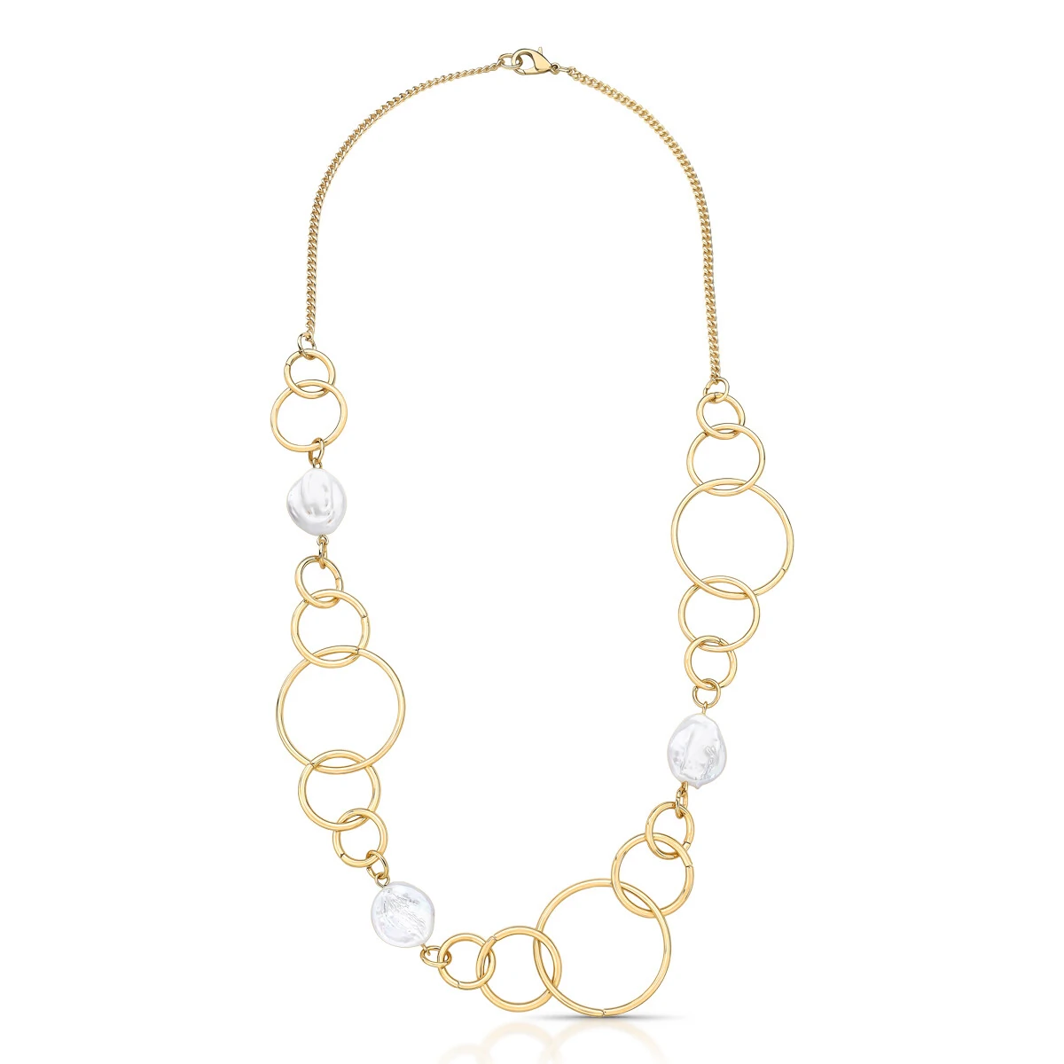 O Colar Aruba traduz a harmonia perfeita entre design contemporâneo e elementos naturais. Seus elos circulares em banho de ouro 18K criam um visual marcante e fluido, enquanto as pérolas de água doce surgem como pontos de luz orgânica, trazendo sofisticação, feminilidade e autenticidade ao look.