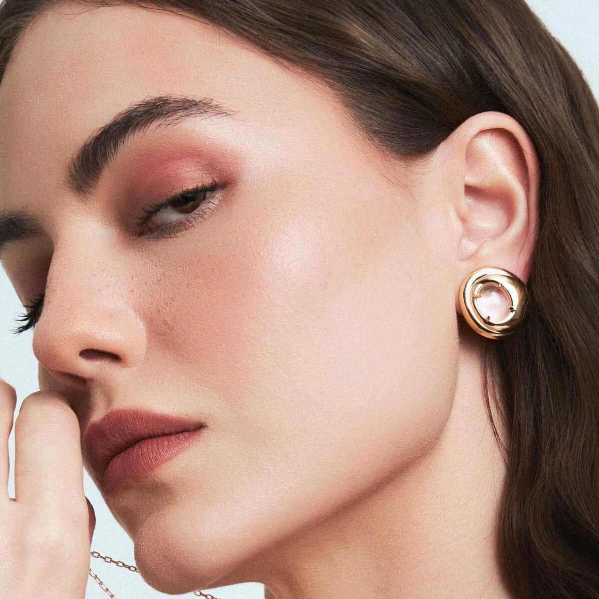 O Brinco Jilli é a tradução da elegância contemporânea. Seu design robusto com cristais translúcidos cuidadosamente envolvidos pelo banho de ouro 18K, cria um efeito de movimento suave que valoriza o rosto com leveza e modernidade. Uma joia pensada para mulheres que apreciam brilho equilibrado e um visual naturalmente sofisticado.