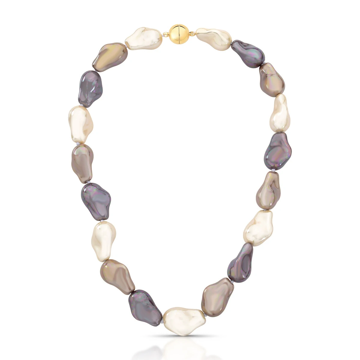 A presença de pérolas em tamanho expressivo e multicores, confere protagonismo à peça, enquanto o banho de ouro 18K garante um acabamento sofisticado e durável. Resulta em uma joia versátil, elegante e cheia de personalidade.