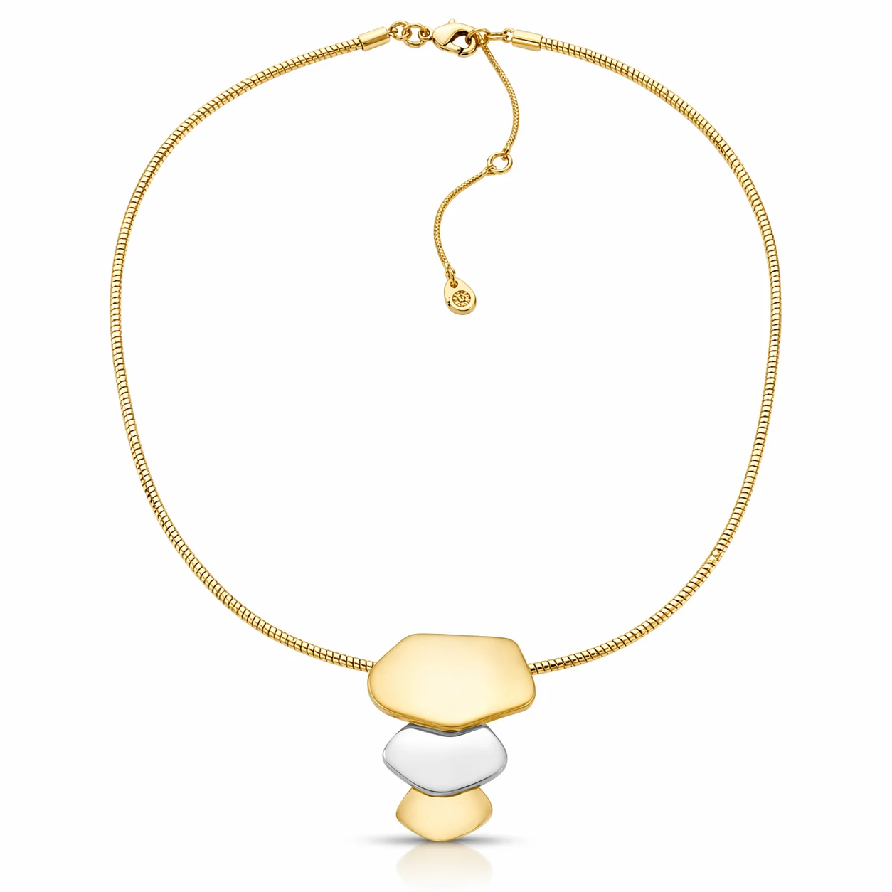 Minimalista, moderno e extremamente elegante, o Colar Gilberto em Mix de Banhos Acetinado é a peça perfeita para quem valoriza sofisticação com identidade. Seu design orgânico, com formas suaves e sobrepostas, cria um visual contemporâneo que foge do óbvio — ideal para destacar o colo com leveza e estilo.