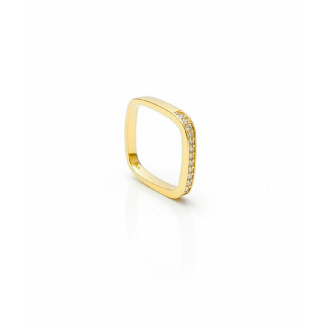 Aliança Quadrada Cravejada de Zircônias com Banho de Ouro 18K