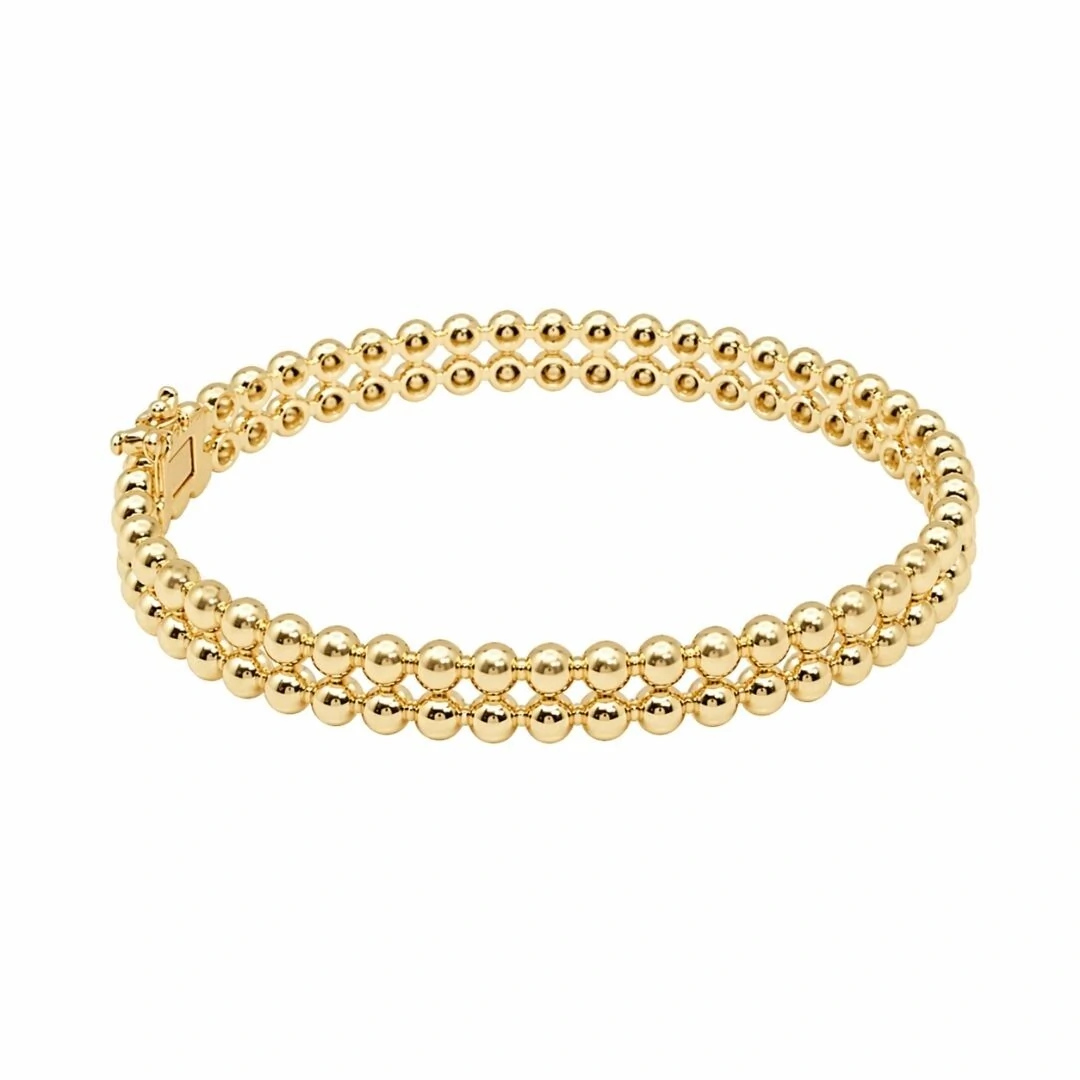 O Bracelete Globina combina elegância contemporânea e design em uma composição sofisticada e equilibrada. Seus elementos em esferas intercalados criam um visual moderno e arquitetônico, trazendo movimento e leveza à estrutura da peça.