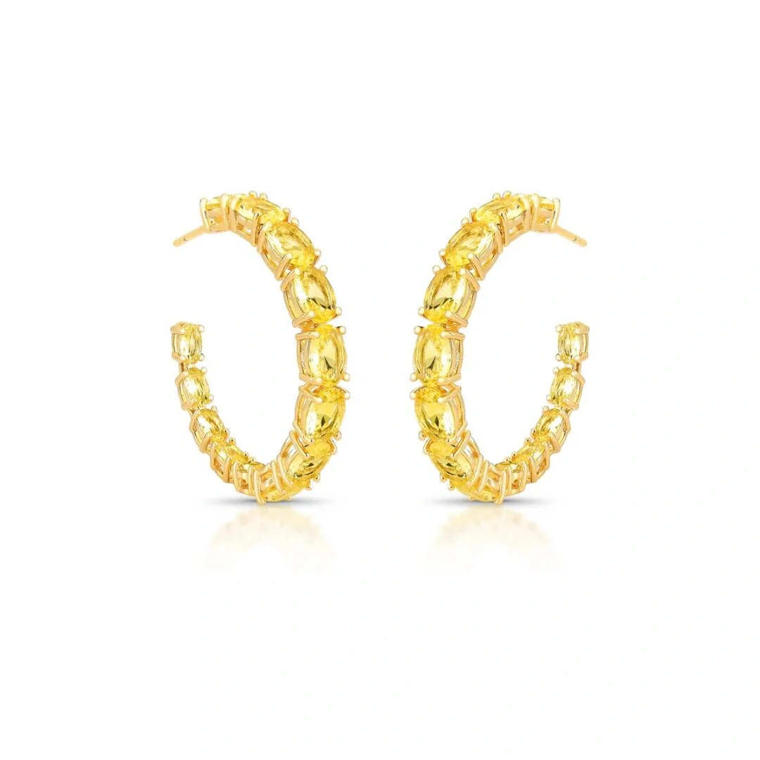 O Brinco Amarantos com Cristais e Banho de Ouro 18K é uma joia que une glamour e sofisticação em cada detalhe. Seu design em argola é cravejado por cristais lapidados, que refletem a luz de forma intensa e sofisticada, iluminando o rosto com elegância.