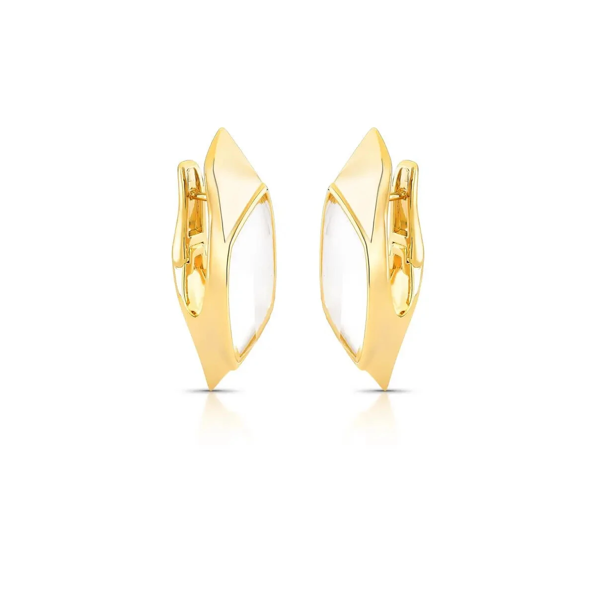 O Brinco Bonfim Click com Cristal Translúcido e Banho de Ouro 18K é uma joia que reflete a elegância através da simplicidade. Seu design geométrico e contemporâneo valoriza o brilho suave do cristal, criando um efeito de luz que destaca o rosto com delicadeza e sofisticação.