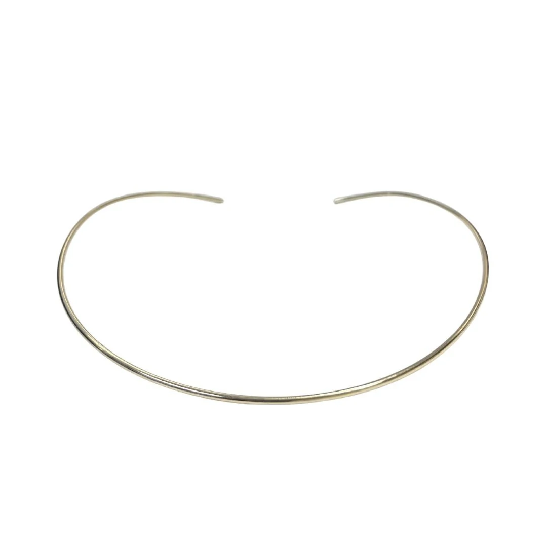 O Colar Aro II com Banho de Ouro 18K é a definição de elegância arquitetônica. Sua estrutura rígida e polida valoriza o colo com um contorno preciso e sofisticado, perfeito para composições modernas e visuais impactantes.